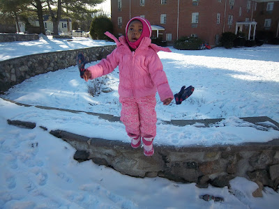 Last night and early this morning we got more snow (2 more months of winter and counting...San Diego, I miss you. Call me!!). Elizabeth's Day Care was closed, luckily our friend Maria was able to take her for the day. Between my parents and friends, E and I are so lucky to have a great support system.